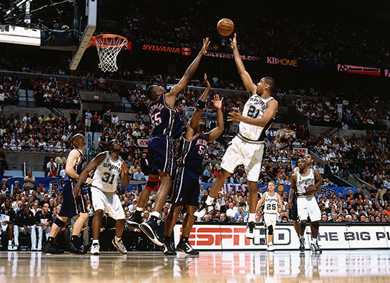 Leading the charge is back-to-back MVP, Mr. Fundamental, Tim Duncan. The 2003 season was arguably Timmy’s best with a laundry list of individual and team achievements. For starters, the All-star lead the Spurs in Finals MVP fashion to their 2nd NBA Championship. During the regular season Duncan won: League MVP, All-NBA 1st Team and All-NBA 1st Team Defense. Adidas made a good call signing Tim because all of this happened during his first contact year. In the Finals Tim served as the poster child for the Adidas A-3 Superstar.