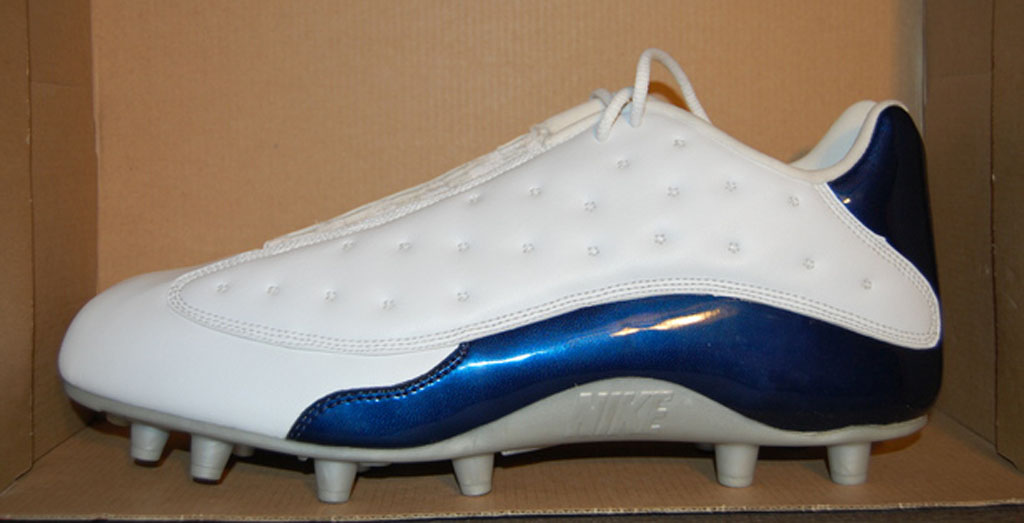 What’s more crazy: Jordan 13 PEs or wearing normal looking hoops shoes on the gridiron? In a ‘bred’-like manor these 13’s feature a royal mudguard and heel. Really though, how many straight up retros have you seen worn in the NFL?