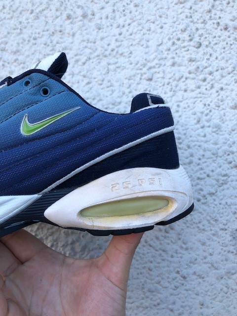 Above: We get a great view of the PSI printed above the heel unit, a nice touch that shows how ‘techy’ Nike was getting with their shoes. A wrap-around strip of upper nylon covers the Achilles region providing added heel lockdown and stability without having to add a dedicated heel cap.